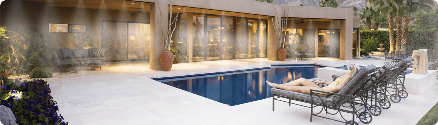 Fogging systems add a unique cooling experience to your backyard. Unlike mist from a misting system, fog evaporates slowly. As a result, fog cooling systems not only help reduce outdoor temperatures in an area, but they also provide an otherworldly aesthetic effect. This effect can enhance the overall backyard experience for you and your loved ones. For example, with a fogging system, you can transform the atmosphere of your pool into something more so resembling a tropical oasis.