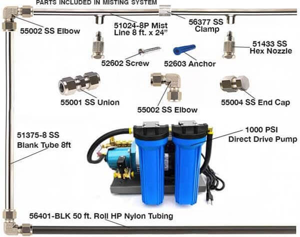 - Versatility: Whether installed as a standalone system or integrated into existing infrastructure, our misting systems adapt seamlessly to various applications, offering incredible versatility and convenience